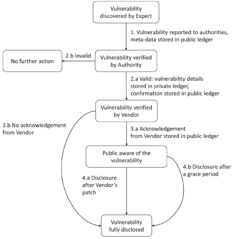 The Automated Responsible Disclosure of Security Vulnerabilities is a solution that leverages a distributed ledger and inteledger technologies to automate the disclosure process while offering increased security, privacy and transparency.