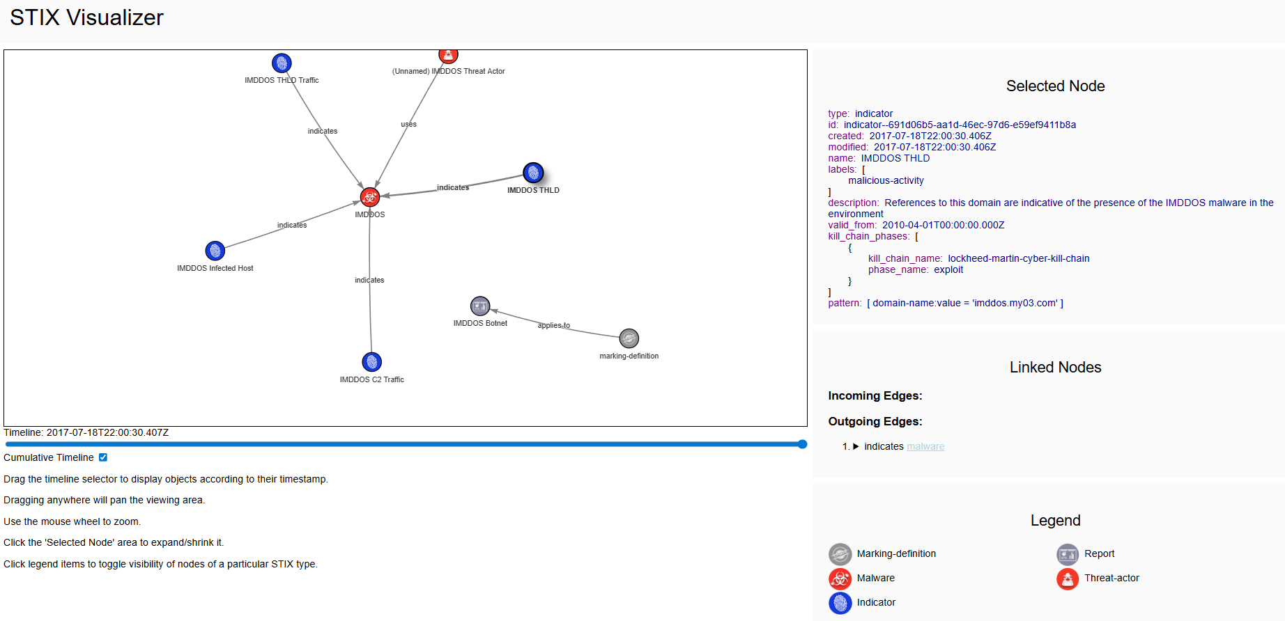 The STIX Visualizer allows us to rapidly visualize the STIX objects and their relationships. It consumes a Json object and maps out such that it’s easily understandable for humans.
